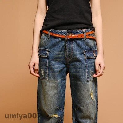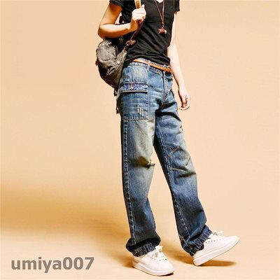 デニムパンツ レディース ダメージ ワイドパンツ ガウチョパンツ カジュアル ジーンズ ロング丈 オシャレ ストレート ハイウエスト 体型カバー 新作 コーデ