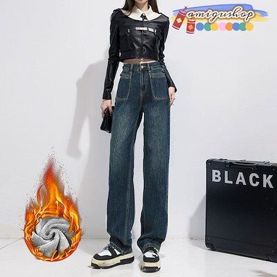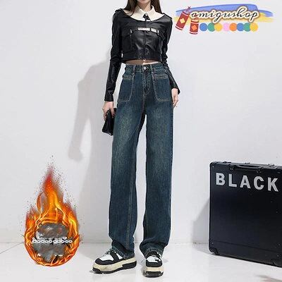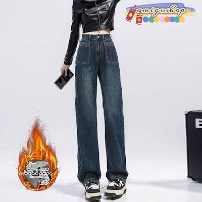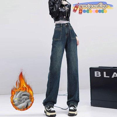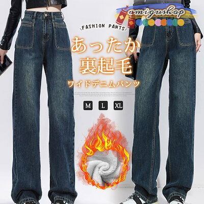 デニムパンツ 裏ボア ワイドパンツ デニムパンツ レディース ロングパンツ 裏起毛 ボトムス デニム ジーンズ ガウチョパンツ 体型カバー ロングパンツ