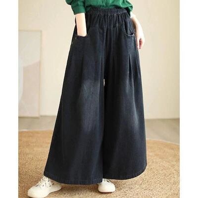 人気デニム ワイドパンツ レディース ガウチョパンツ デニムパンツ ゆったり ボトムス ジーパン ジーンズ バギー イージーパンツ