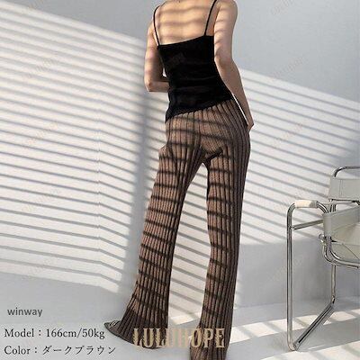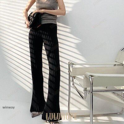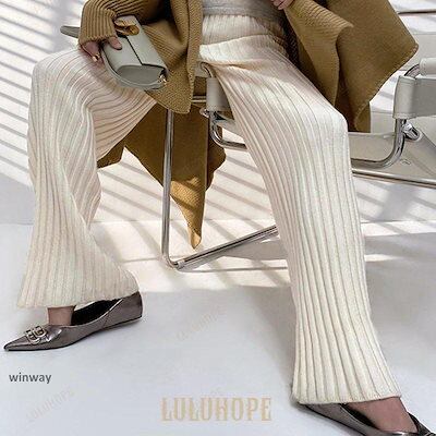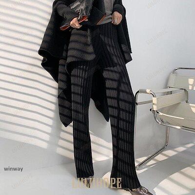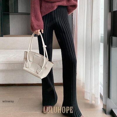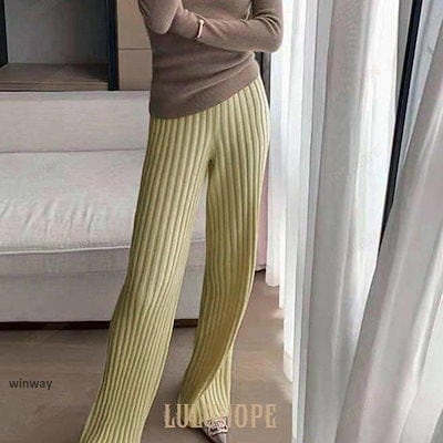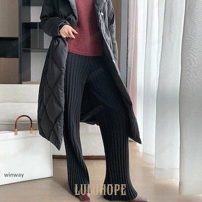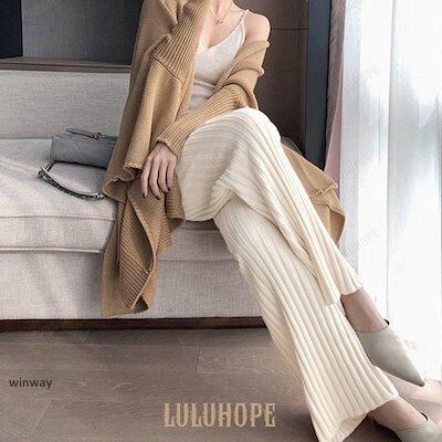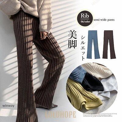 ワイドパンツ レディース 秋 冬 ニットパンツ リブニット パンツ ロングパンツ 無地 リブ ボトムス 大人 ガウチョパンツ ゆったり 40代 OL ママ OL あす楽