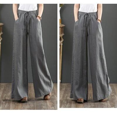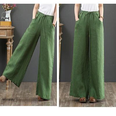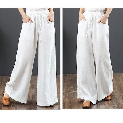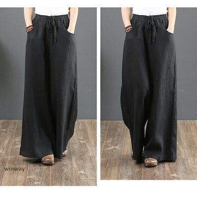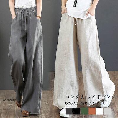 ワイドパンツ レディース ガウチョパンツ パンツ 体型カバー 大きいサイズ ロング丈 マキシ丈 ボトムズ 綿麻風 夏 着痩せ 無地 おしゃれ カジュアル ゆったり