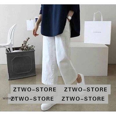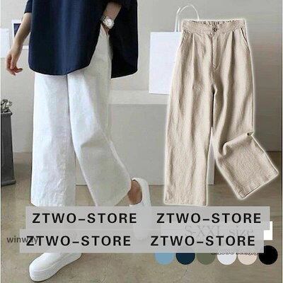リネンワイドパンツ 綿麻混 麻混 9分丈 ワイドパンツ ガウチョパンツ ゆったり リネン コットン パンツ ボトムス レディース