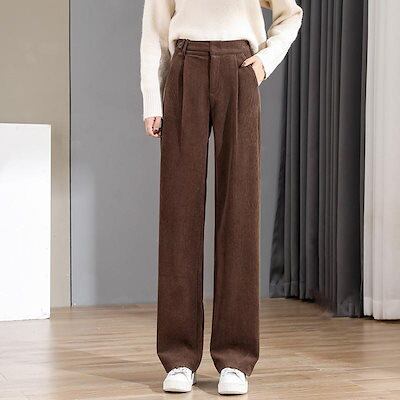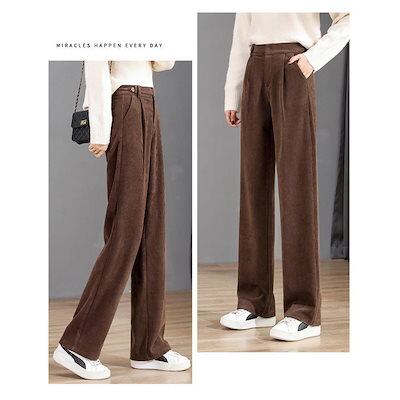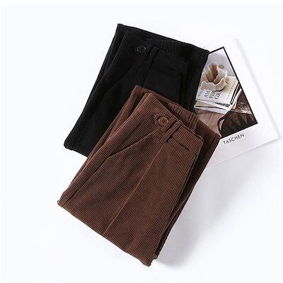 ワイドパンツ 春 夏 秋 レディース コーデュロイ ガウチョパンツ カジュアル ボトムス 楽ちん ゴム付き ストレート 履きやすい ゆったり 通勤通学 ボタン飾り
