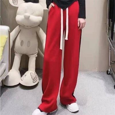 ワイドパンツ 春 夏 秋 レディース コーデュロイ ガウチョパンツ カジュアル ボトムス 楽ちん スプライシング ストレート 履きやすい ゆったり ゴム付き 肌触り