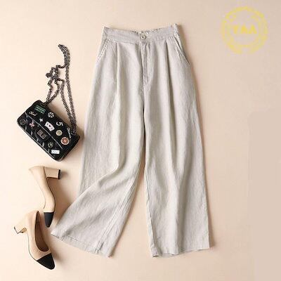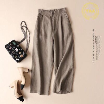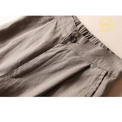 レディース ワイドパンツ 春 夏 秋 スカーチョ ガウチョパンツ リネン 通勤 体型カバー 9分丈 綿麻