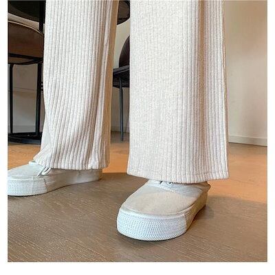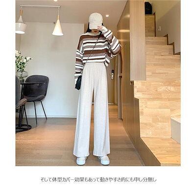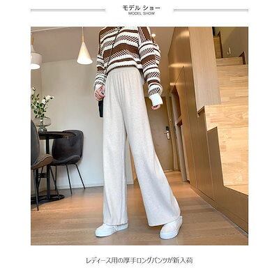 ワイドパンツ 春 夏 秋 レディース ロングパンツ 厚手 ニットパンツ 冬 ガウチョ パンツ ゆったり 体型カバー カジュアルパンツ ウエストゴム