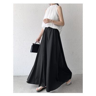 ワイドパンツ 春 夏 秋 レディース ボトムス ガウチョパンツ ロング丈 シフォン 無地 フレア 体型カバー 着痩せ おしゃれ 美脚 通勤 OL 旅 上品 20代 30代 40代