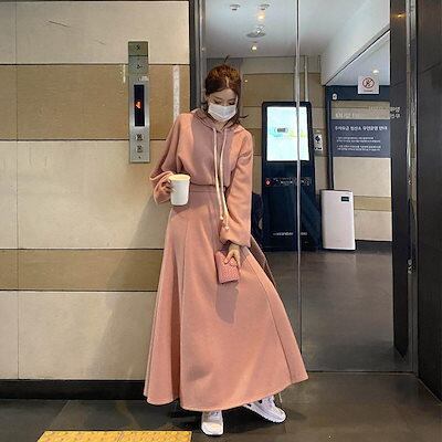トップス+ズボン 2点セット 長袖 パーカー 大きいサイズパーカー スウェット ア ップ フード付きアウター無地 スウェットパンツ韓国ファッション レディーストレーニングウェアスポーツウェアトレーナ
