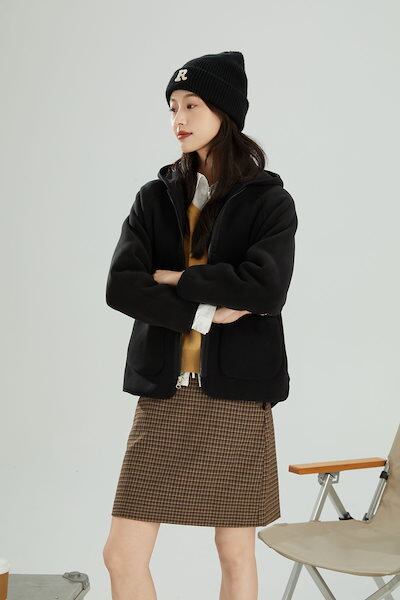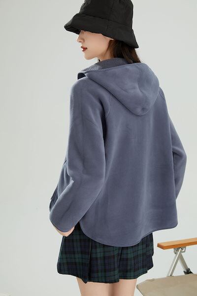 【両面着用】厚手 パーカー ラムズフリース アウター ショート コート 裏起毛 スウェット グレーの薄いファスナーの女性春と春の韓国版のカジュアルコート ゆったりしたスポーツの 韓国 レディース 福袋