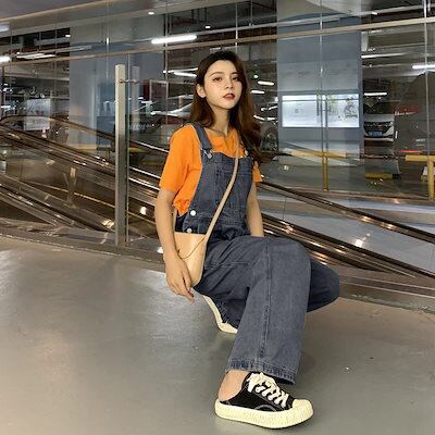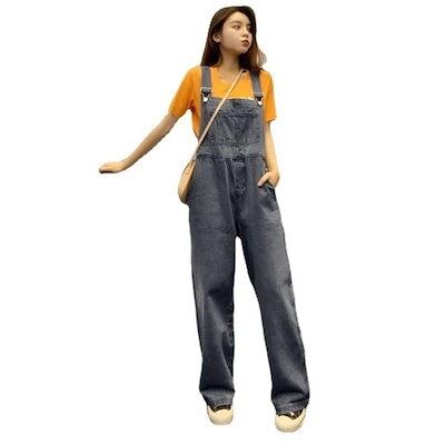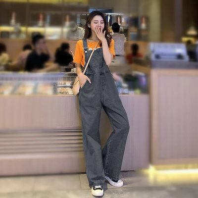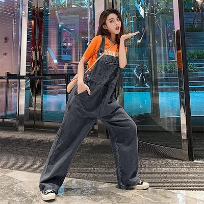 キャミワンピースサロペット大サイズ デニム サロペット ストレート日韓 ゆったり カジュアル ワイドパンツ オーバーオール デニム 無地 ズボン 薄手 ロング ノースリーブ 福袋 T