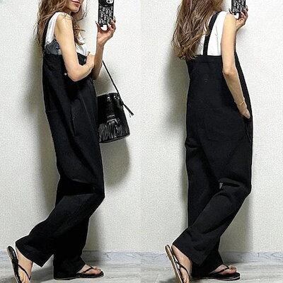キャミワンピースサロペット韓国ファッション ワイドパンツ カジュアル ゆったり オーバーオール デニム 無地 サロペット ズボン 薄手 ロング ノースリーブ 福袋 T