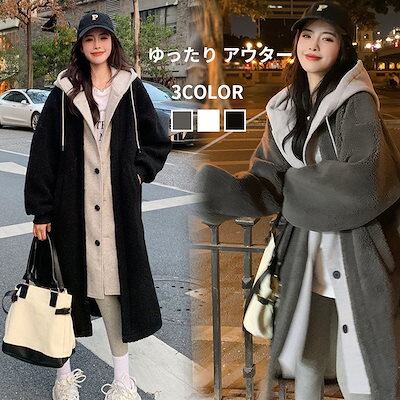 セミロング アウター ラムズフリース コート フェイクツーピース レディース もこもこ ウォーム トップス 大サイズ 着やせ 裏起毛 カーディガン ダウンコート 防寒 大きいサイズ 福袋 T