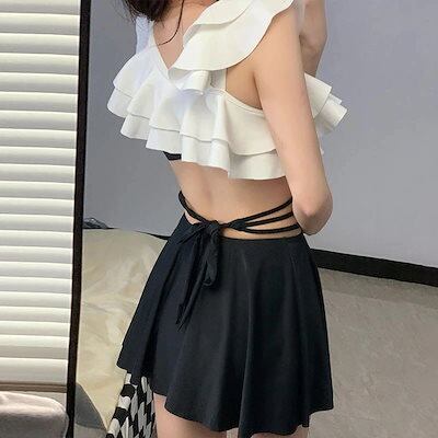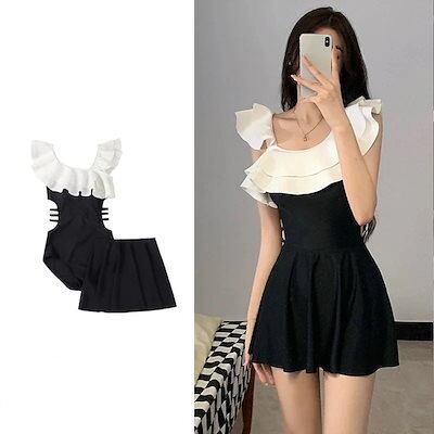 メガ割 水着 韓国ファッション?体型カバー 水着 ワンピース レディース 2点上下セット 大きいサイズ 可愛い 長袖ラッシュガード大きいサイズ水着 ラッシュガードwudamne