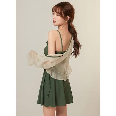 短納期 水着 韓国 高校生 体型カバー 水着 レディース ワンピース ラッシュガード 2点セット 胸パット付き UV対策 オールインワン 可愛い セクシー 露出控えめ