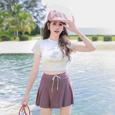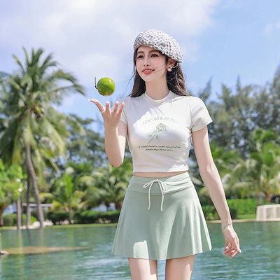 韓国 可愛い レディース 温泉 セパレート水着 修学旅行 ワンピース 水着 ラッシュガード 体型カバー ビキニ 2点セット2025新作スポーツセクシー着やせ水着