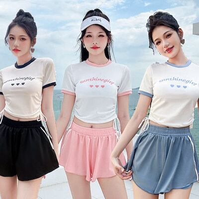 水着 2025新作 韓国ファッション水着 レディース 体型カバー 長袖 ラッシュガード2点セット 水着セット日焼け対策 大きいサイズセットアップ
