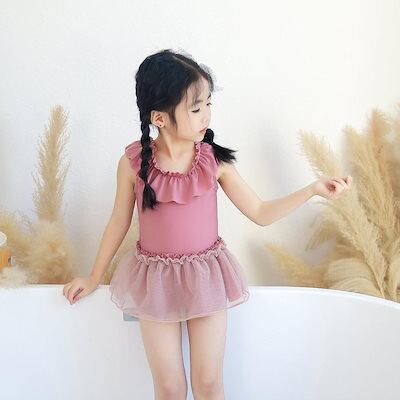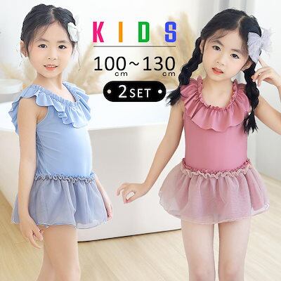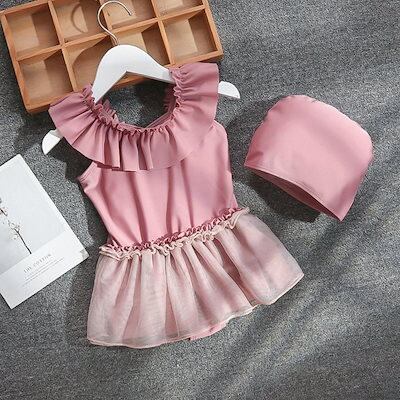 キッズ 水着 女の子 ワンピース キャップ 2点セット かわいい おしゃれ 子供 ベビー ジュニア チュール