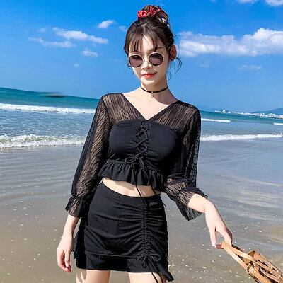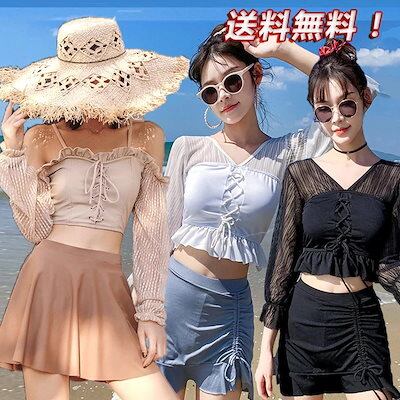 水着 レディース 2点セット ビキニ UVカット体型カバー着痩せ 韓国ファッション可愛い ゆったり中学生 高校生スポーツ スポーティー タンキニ ラッシュガード ワンピース 大きいサイズ