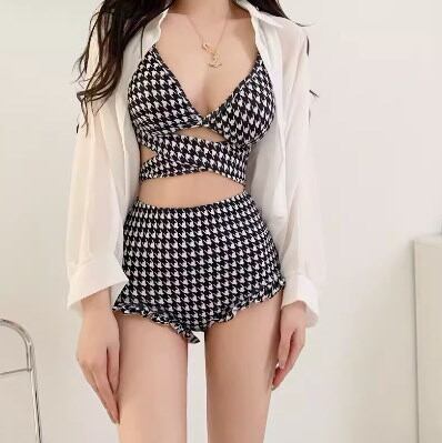 水着 ビキニ スイムウェア レディース タンキニ モノキニ 体型カバー 短パン 三角ビキニ セパレート パッド付き リボン ウエストマーク セット 上下セット 大人可愛い きれいめ シンプル