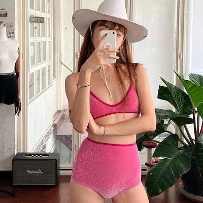 2024レディース無地ビキニスプリットハイウエスト三角スポーツ甘辛温泉旅行スリングビキ