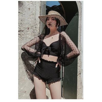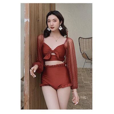 【正規品 急速出荷】水着レディース 体型カバー 水着2点セット フレアスカート セパレート 三角パンツ 小胸バンドゥビギ
