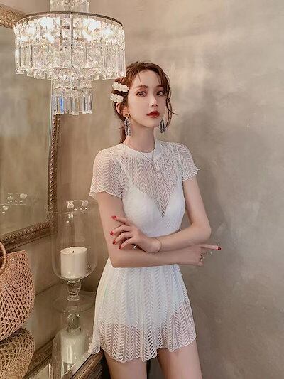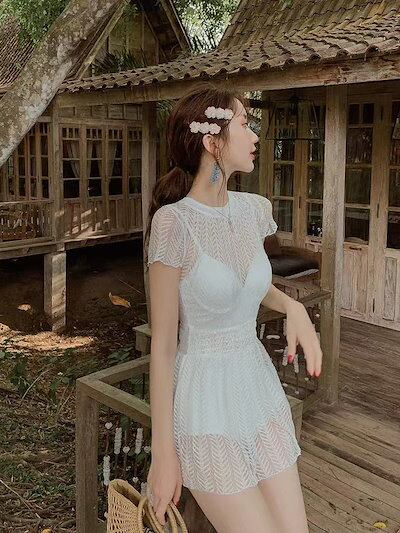 2022 レディース水着レース韓国インスタイルスチールサポートギャザーコンサバお腹カバースリムスカートスパ水着
