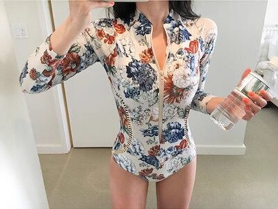 水着 スイムウェア サーフィンスーツ レディース カジュアルサーフィン水着 三角ワンピース水着 ワンピース ノンワイヤー パッド付き 長袖 七分袖 ナイロン かわいい 大人可愛い きれいめ