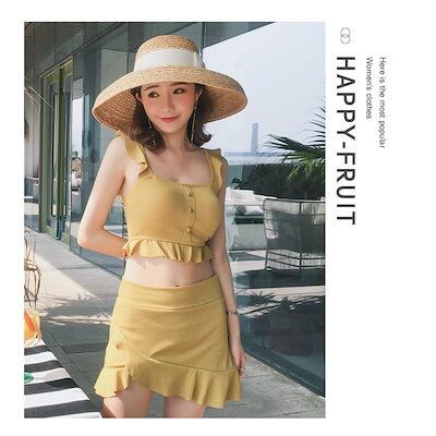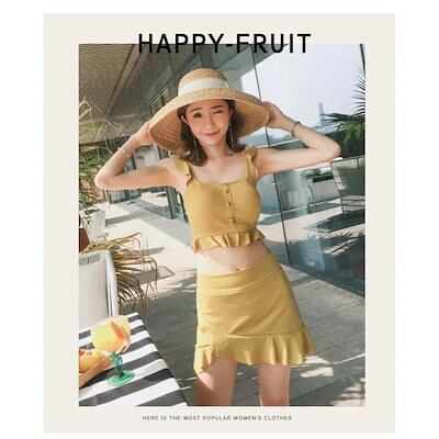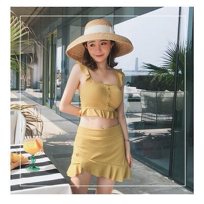 水着レディース 体型カバー 水着3点セット フレアスカート セパレート 三角パンツ 小胸バンドゥビギニ 水着 韓国風 40代 可愛い スイムウェア 温泉 ママ3407