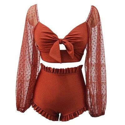 水着レディース 体型カバー 水着2点セット フレアスカート セパレート 三角パンツ 小胸バンドゥビギ2831