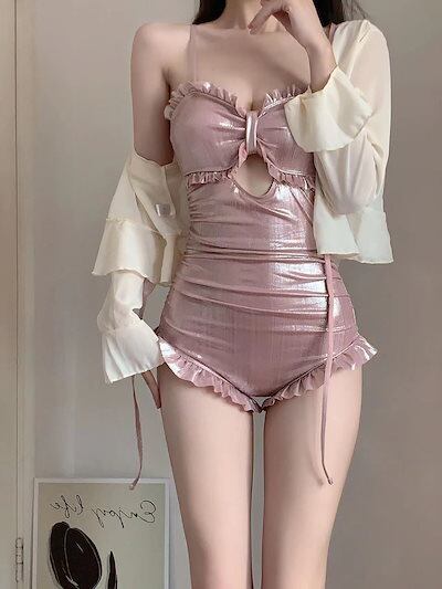 2024 ポリエステル 水着 レディース インズ ワンピース 三角カバーアップ ツーピース ビキニ セクシー 痩身 お腹カバー 温泉バッチ