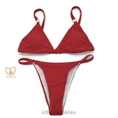 水着 三角形ビキニ レディース 三角 トライアングル ビキニ 調整可能 背中がきれいに見える 原色 白 黄色 赤 黒 オレンジ リング ストラップ付
