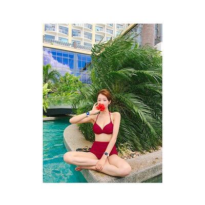 水着 ビキニ レディース 無地 ホルターネック ワイヤービキニ セクシー バスト 盛れる 2点セット 女性用 三角ビキニ セパレート 温泉着