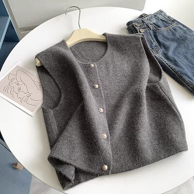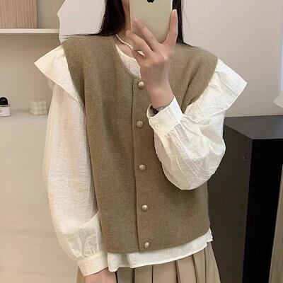 秋 冬 ニット ゆったり シンプルトップス ニットベスト レディース Vネックドルマンスリーブ 大きいサイズ 薄手 体型カバー