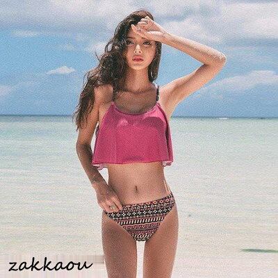 ビキニ水着レディース ビキニ2点セット 韓国風 フレア ボリューム 水着 セパレート 40代 スイムウェア 温泉 海辺 ビーチ 女性用 夏物 女の子 水着 レディース 可愛い 大きいサイズ 大人用 水