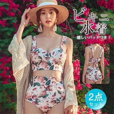 水着 ビキニ レディース 2点セット ビキニセット ビーチ 女性用 花柄 セクシー 旅行用 無地 ワイヤ付き セパレート パッド付 温泉着 女の子 水着 レディース 可愛い 大きいサイズ 大人用 水着
