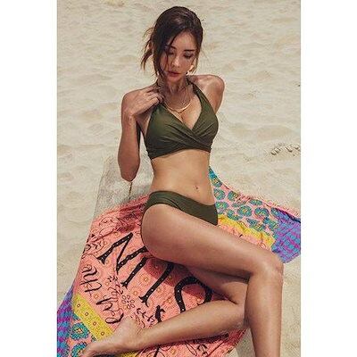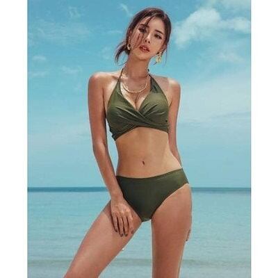 水着 ビキニ レディース 2点セット 可愛い 30代 40代 50代 ホルターネック セクシー セパレート 大きいサイズ 無地 シンプル ツイストデザイン 肌見せ おしゃれ 女の子 水着 レディース