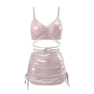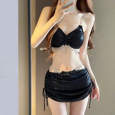 即納 水着 レディース 体型カバー 可愛い?2点セット セクシー 新作ホルター水着レディースラインストーンセクシーツーピーススプリット水着