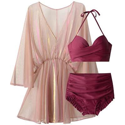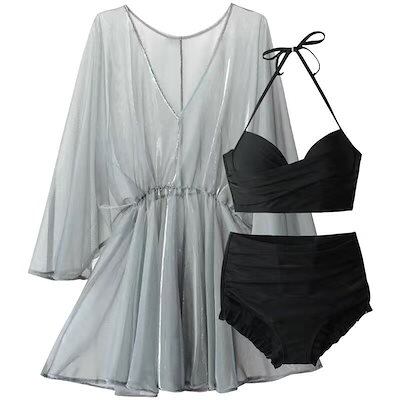 水着 暑い夏でもひんやり接触冷感水着セットアップ 人気沸騰 レディース水着 可愛い 三点セットカップ付きインナー 11