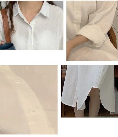 レディースコットンリネン長袖無地ローブシャツ春夏ラペルボタン シャツ ドレスレディース ドレス ブラウス