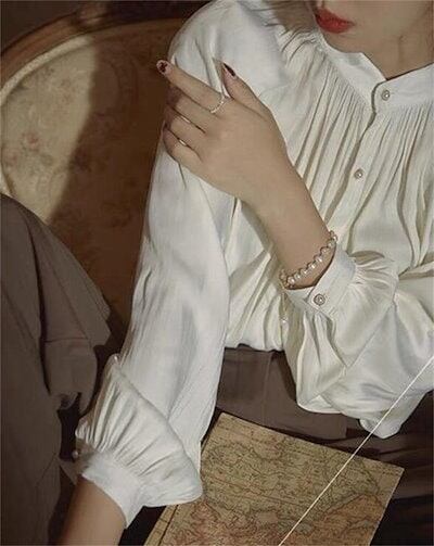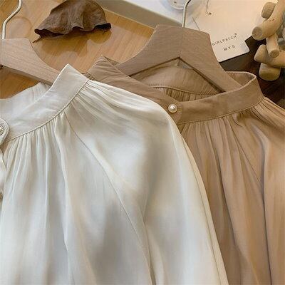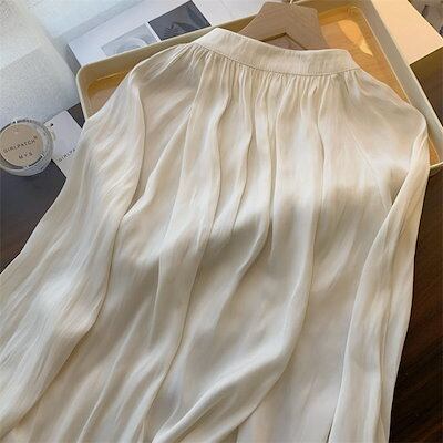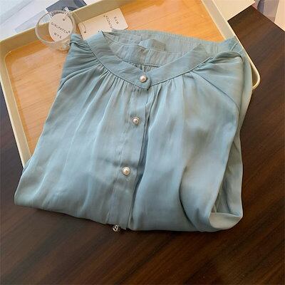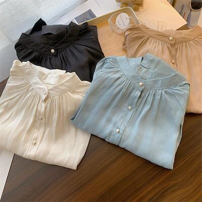 サテン シャツブラウス レディース スーツブラウス 長袖 ギャザー レディースブラウス 無地 ギャザーブラウス 薄手 春夏 秋 パールボタン 七五三 ママ スーツインナー 入学式 卒業式 大人 お洒落