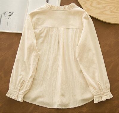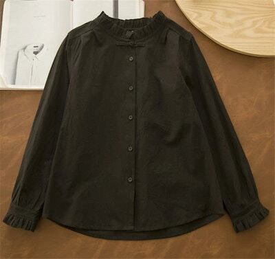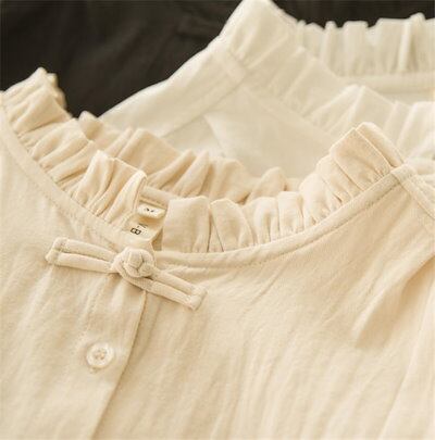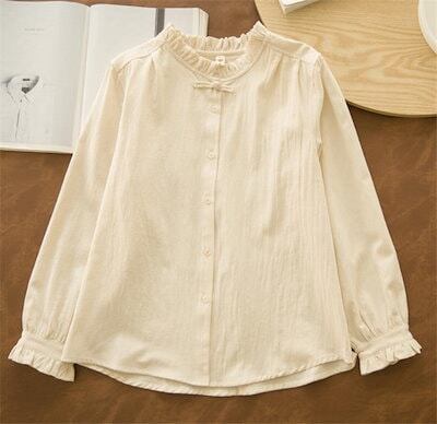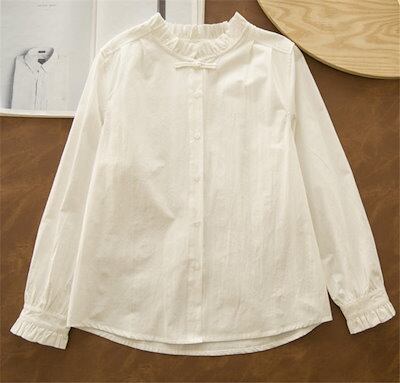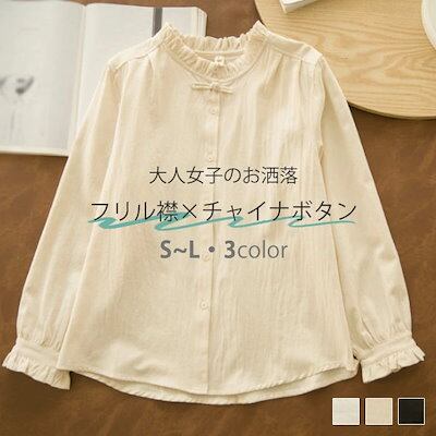 フリル襟 シャツ ブラウス レディース 春 秋 シャツブラウス チャイナボタン 白シャツ 長袖 大人 可愛い トップス 綿 コットン カジュアル 無地 シンプル 通勤 オフィス 仕事 スーツ インナ