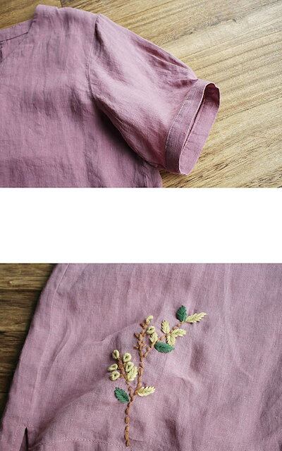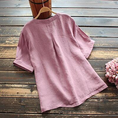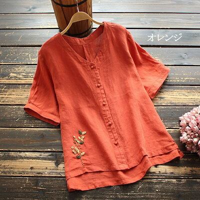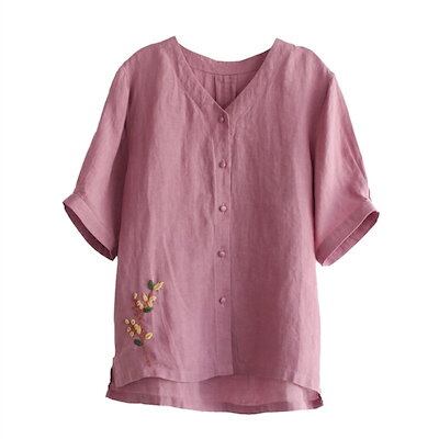 シャツ ブラウス レディース 半袖 綿 ギャザー 春夏 シャツブラウス 刺繍 Vネック 開襟 ボタン コットンシャツ 半袖ブラウス 花 フラワー 前後差 ギャザーブラウス 夏 羽織もの レディース 薄