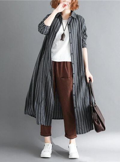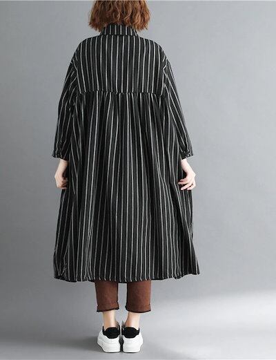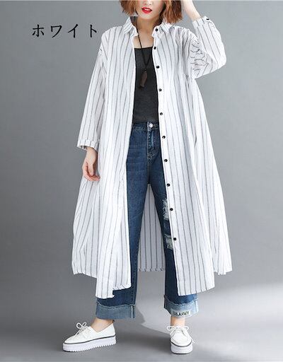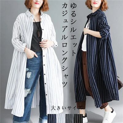 ストライプシャツ レディース 長袖 ロングシャツ 夏 開襟 折り襟 ボタン留め 長袖シャツ 薄手 カーディガン ゆったり カジュアルシャツ ロング ドロップショルダー 羽織り アウター ライトアウター