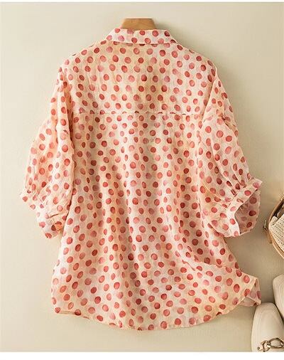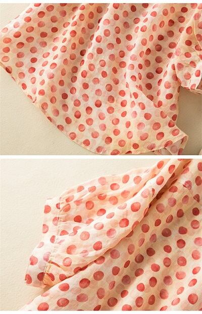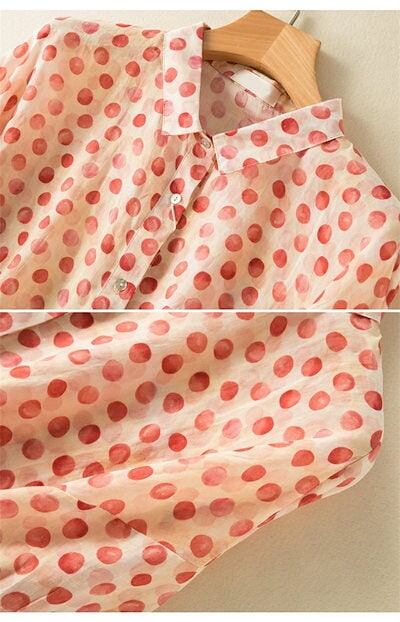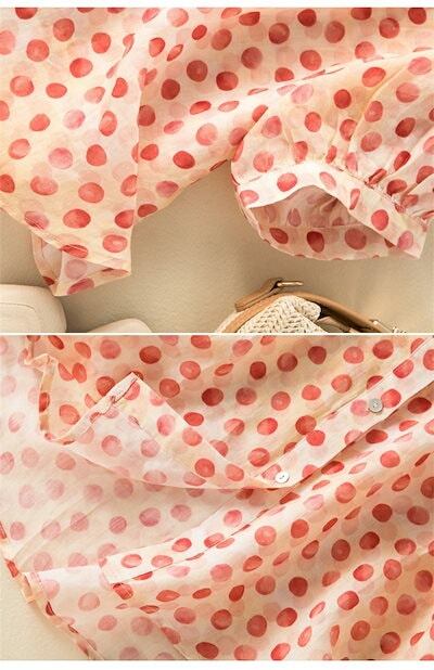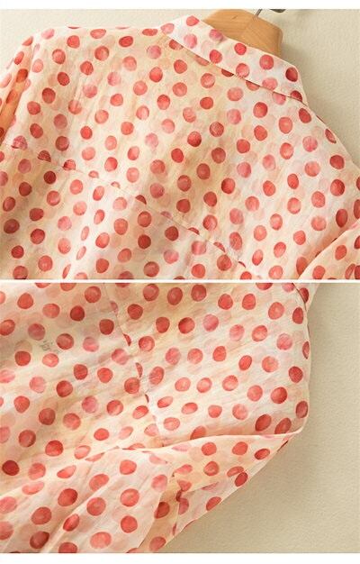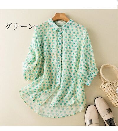 シャツ 半袖 レディース シャツブラウス 水玉 五分袖 バルーン袖 前開き 開襟 ボタン サマーカーディガン 羽織り 羽織るもの リネンシャツ タック ギャザー 折襟 アウター 夏 トップス 春 夏
