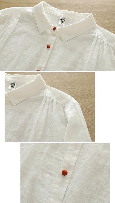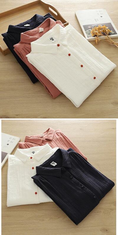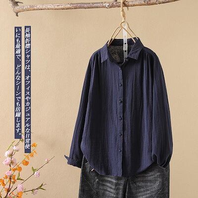 長袖 シャツ 綿 レディース 秋 春 夏 ダブルガーゼシャツ ブラウス トップス 二重ガーゼ 長そで 折襟シャツ コットン 長袖シャツ ラウンドカット ボタン 無地 通勤 カワイイ シンプル オフィス
