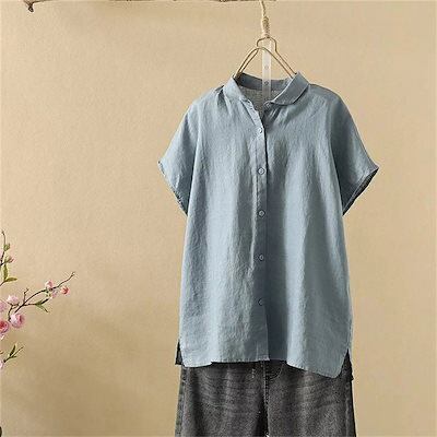 綿シャツ レディース シャツ 半袖 フレンチスリーブ 夏 おしゃれ 白シャツ シャツブラウス とろみ ドルマンスリーブ ドロップショルダ 前開け ボタン止め 折り襟 開襟 コットン 夏シャツ トップス