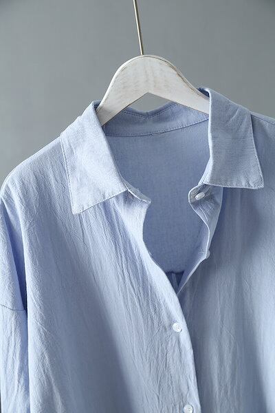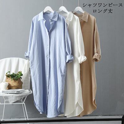 シャツ ロングシャツ レディース シャツワンピース トップス シャツワンピ 長袖 無地 ワンピース ボタン付き ブルー ホワイト カーキ 大きめ 体型オバー おしゃれ ゆったり 大きいサイズ