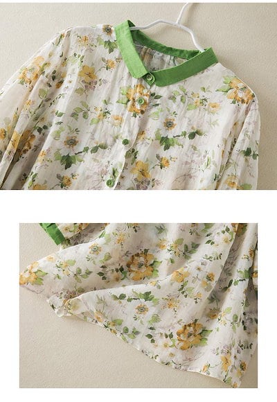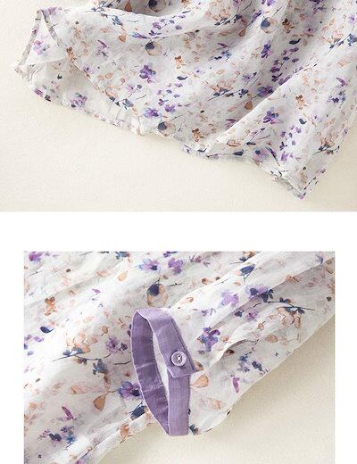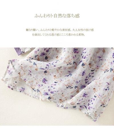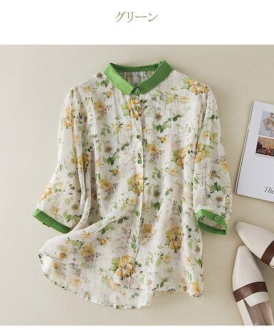 ブラウス 七分袖 レディース 可愛い シャツブラウス 花柄 折り襟 ボタン プルオーバー 綿麻風 大きいサイズ 夏ブラウス 総柄 薄手 透け感 ギャザー 半袖ブラウス トップス ゆったり ふんわり オ