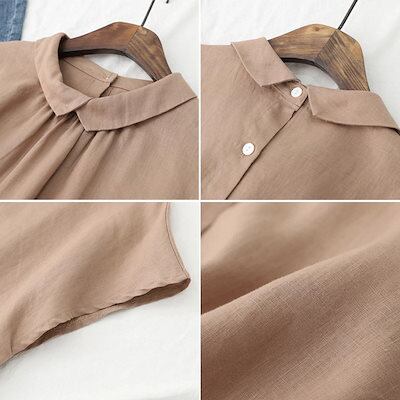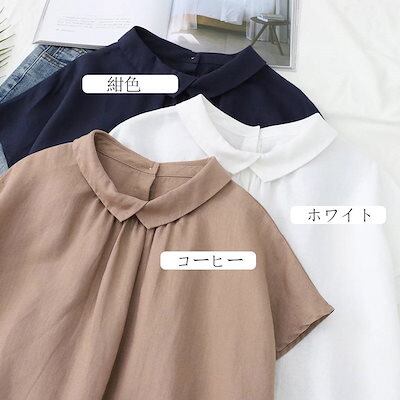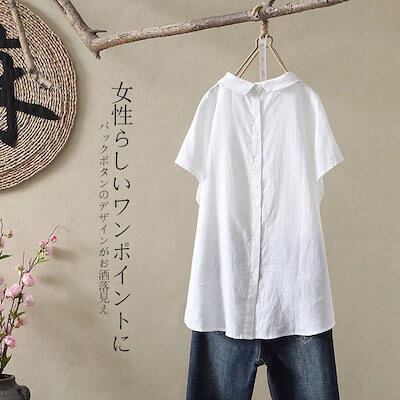 ブラウス 半袖 バックボタン シャツ レディース 夏 トップス フレンチスリーブ 半袖ブラウス おしゃれ 可愛い 半袖シャツ 綿 麻 白シャツ 無地 ブラウス ギャザー 大人可愛い 通気性 吸汗性 ゆ