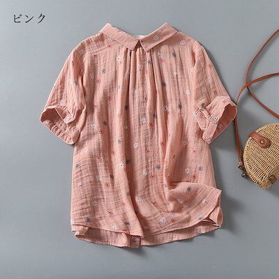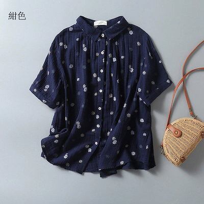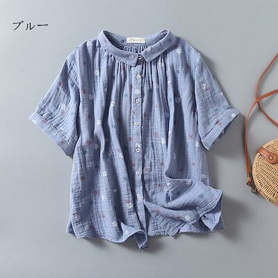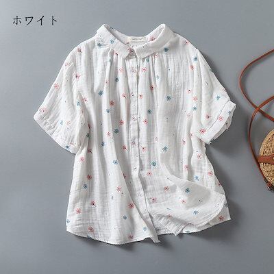 ブラウス シャツ レディース 半袖シャツ 綿 トップス シャツブラウス 半袖 夏 ガーゼシャツ 柄 花柄 半袖ブラウス 襟付き 折襟 可愛い ボタン シンプル コットン デザイン 吸湿 速乾 涼しい